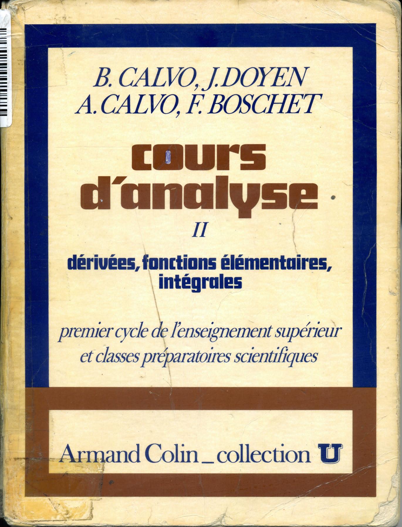 Calvo, B. et al. (s.d.). Cours d'analyse.2 , dérivées, fonctions élémentaires, intégrales . A. Colin;