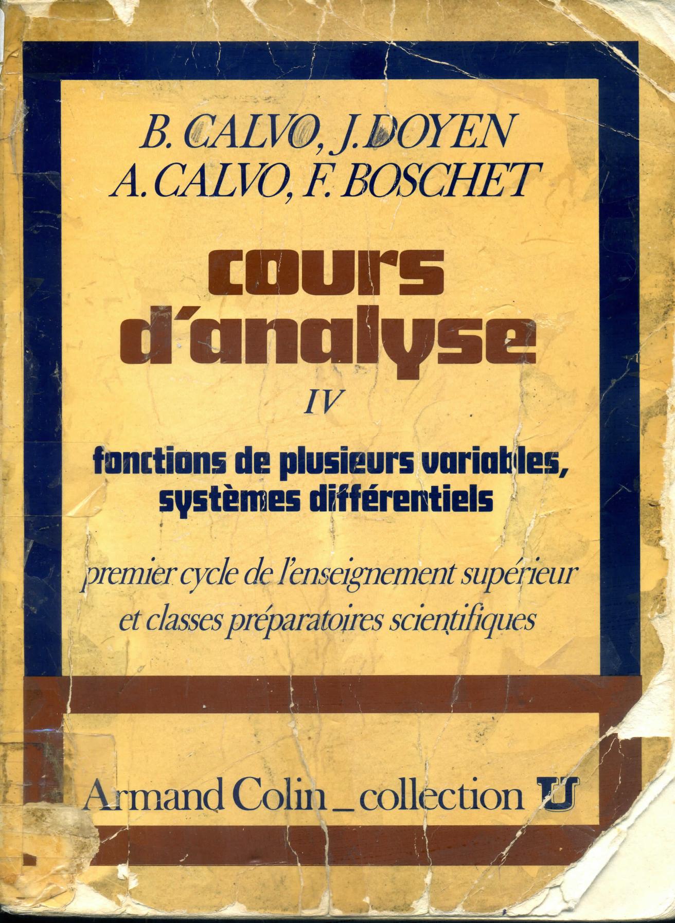 Calvo, B. et al. (1977). Cours d'analyse. 4, fonctions de plusieurs variables, systèmes différentiels . A. Colin;