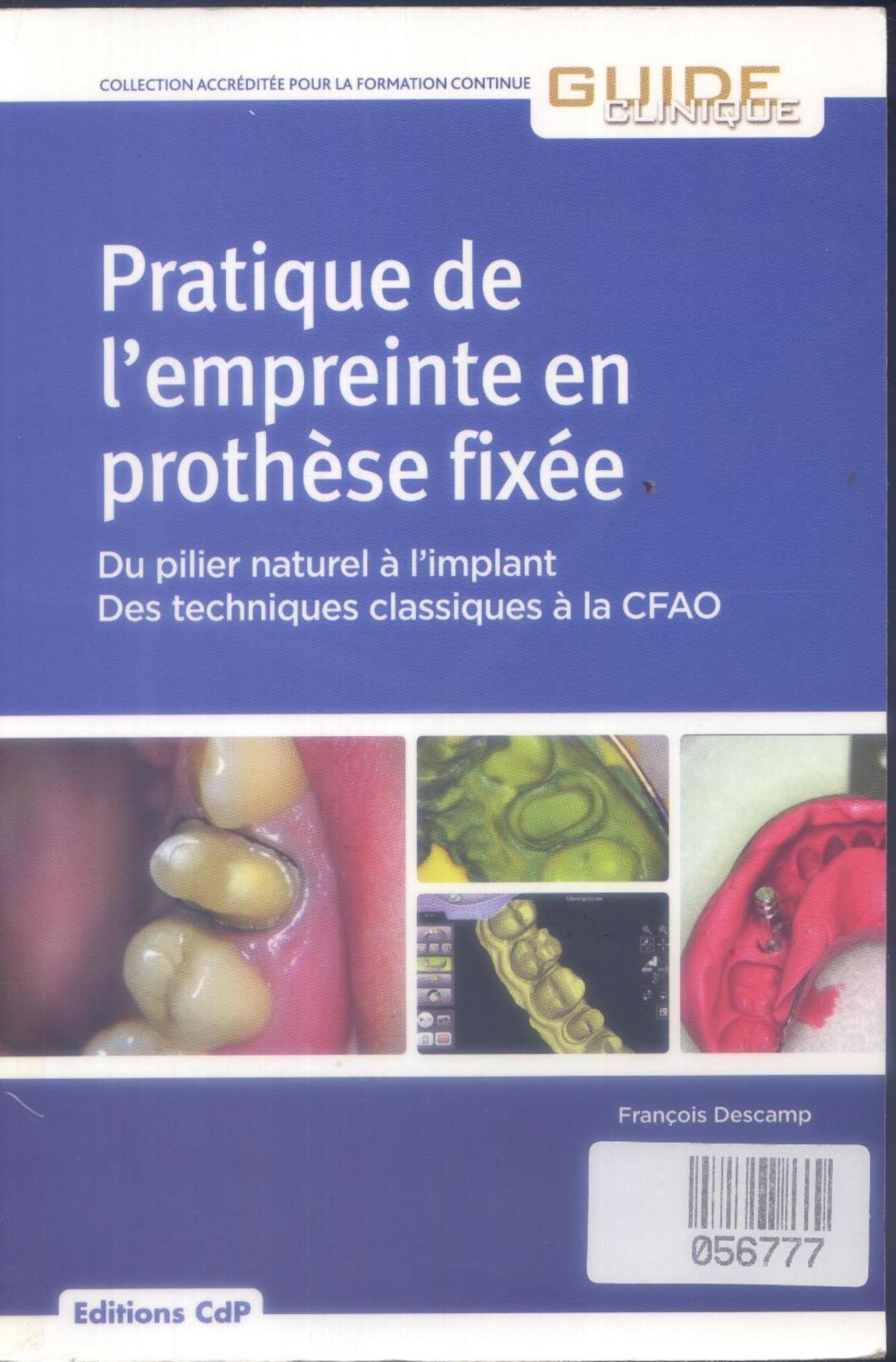 Descamp, F. (2012). Pratique de l'empreinte en prothèse fixée : du pilier naturel à l'implant, des techniques classiques à la CFAO . Editions CdP;