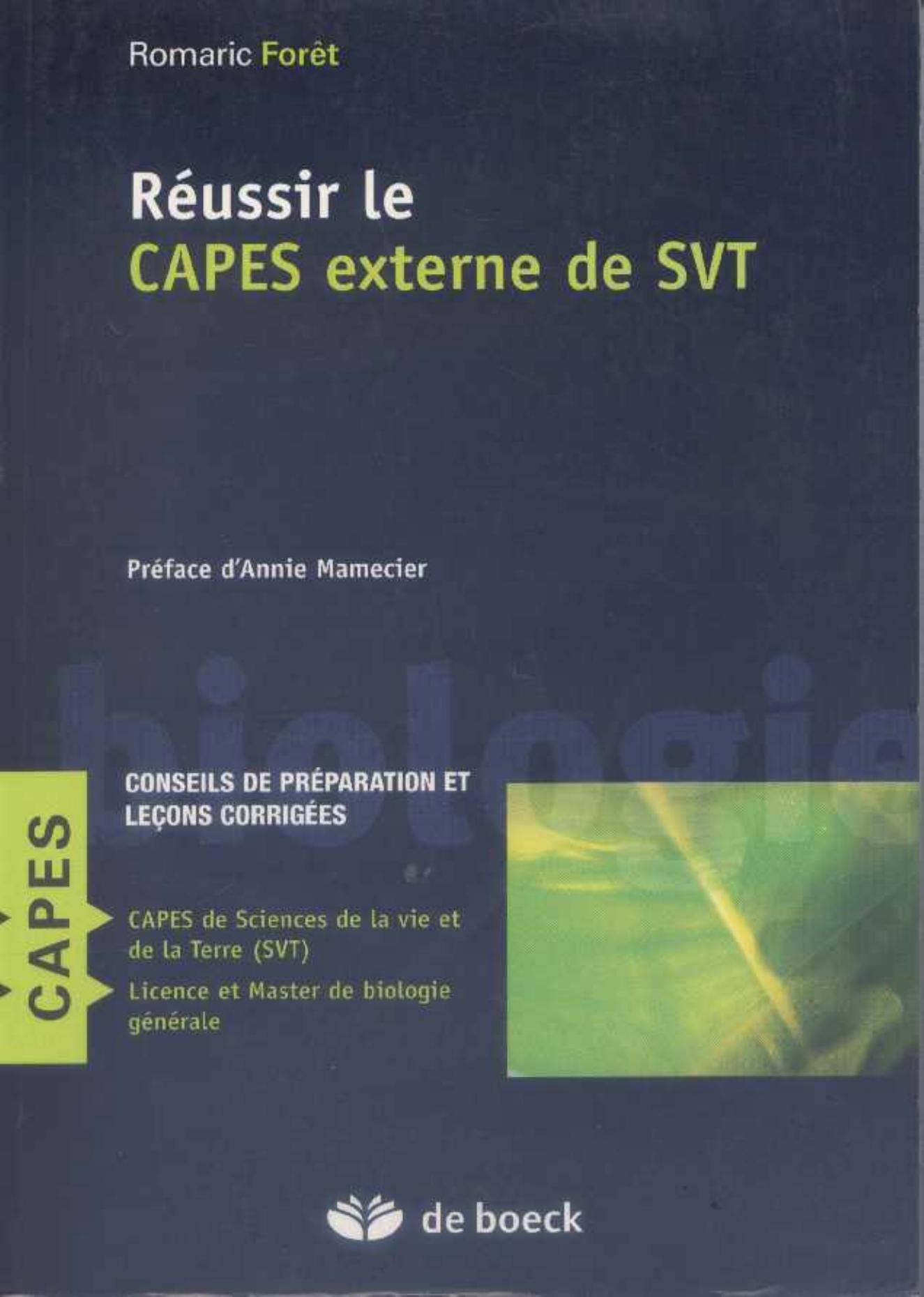 Forêt, R. & Mamecier, A. (2009). Réussir le CAPES externe de SVT . De Boeck;
