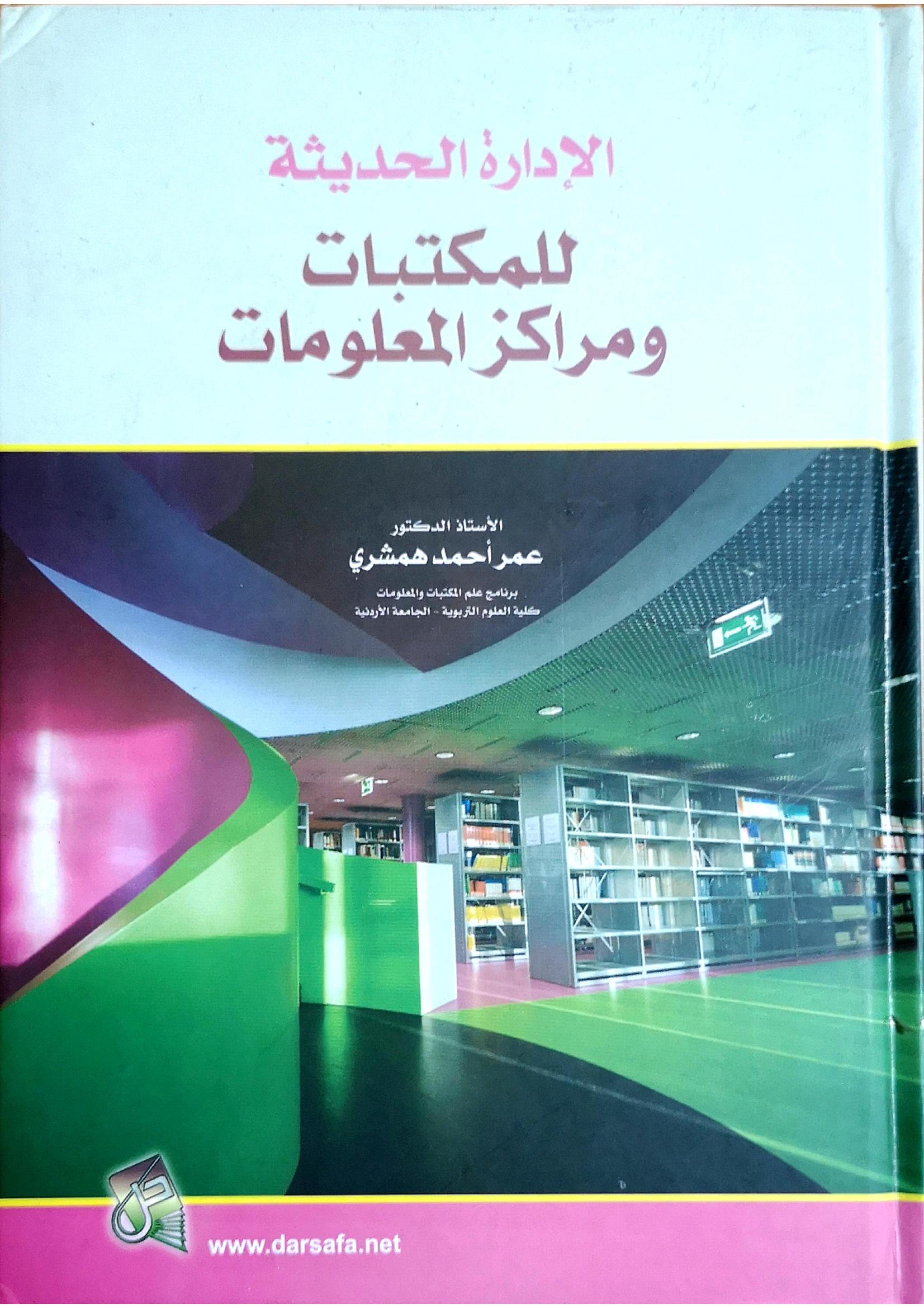 همشري، عمر أحمد (2014). الإدارة الحديثة للمكتبات و مراكز المعلومات (ط. 2) . دار صفاء للنشر والتوزيع;