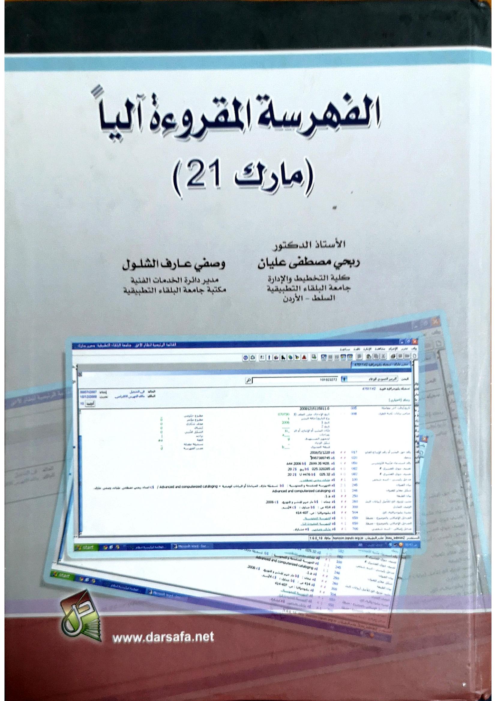عليان, ر. & الشلول، وصفي عارف (2014). الفهرسة المقروءة آليا (مارك 21) (ط. 2) . دار صفاء للنشر والتوزيع;