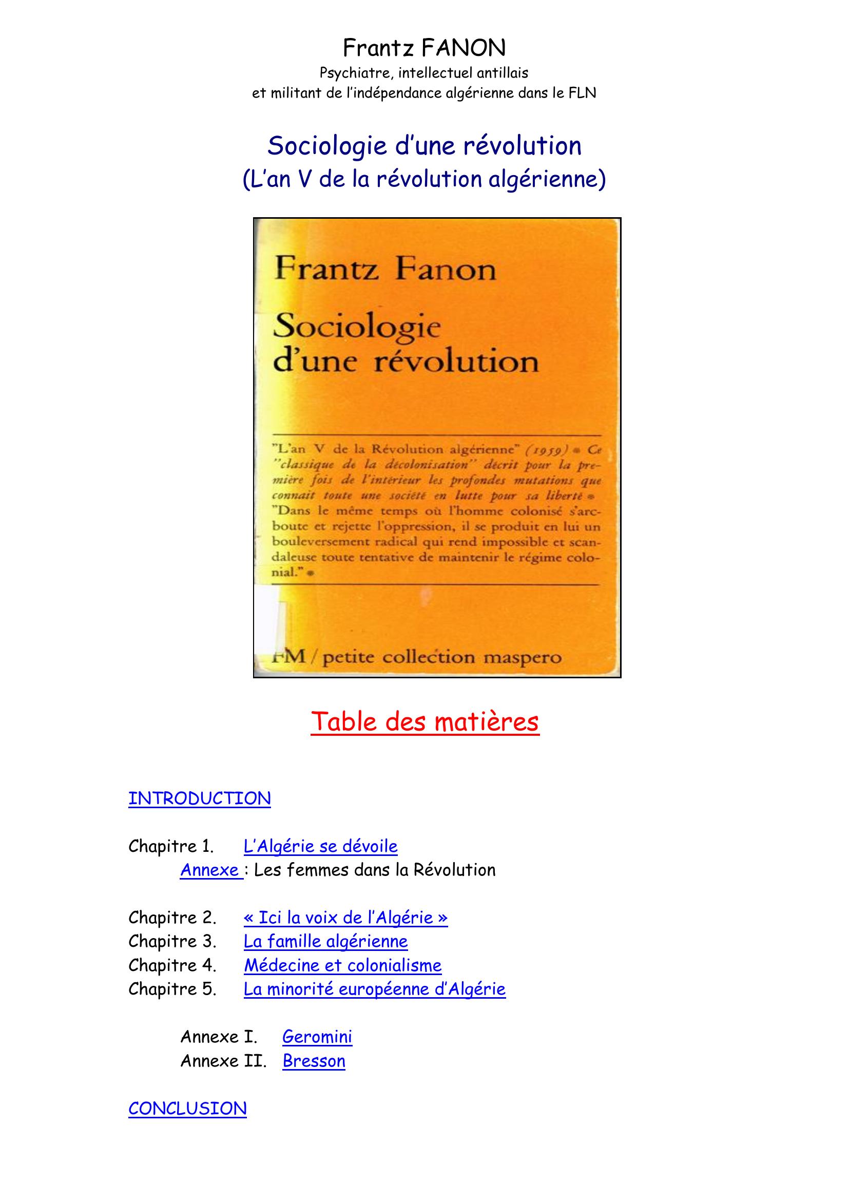 Frantz, F. (1975). Sociologie d'une révolution . F. Maspero;