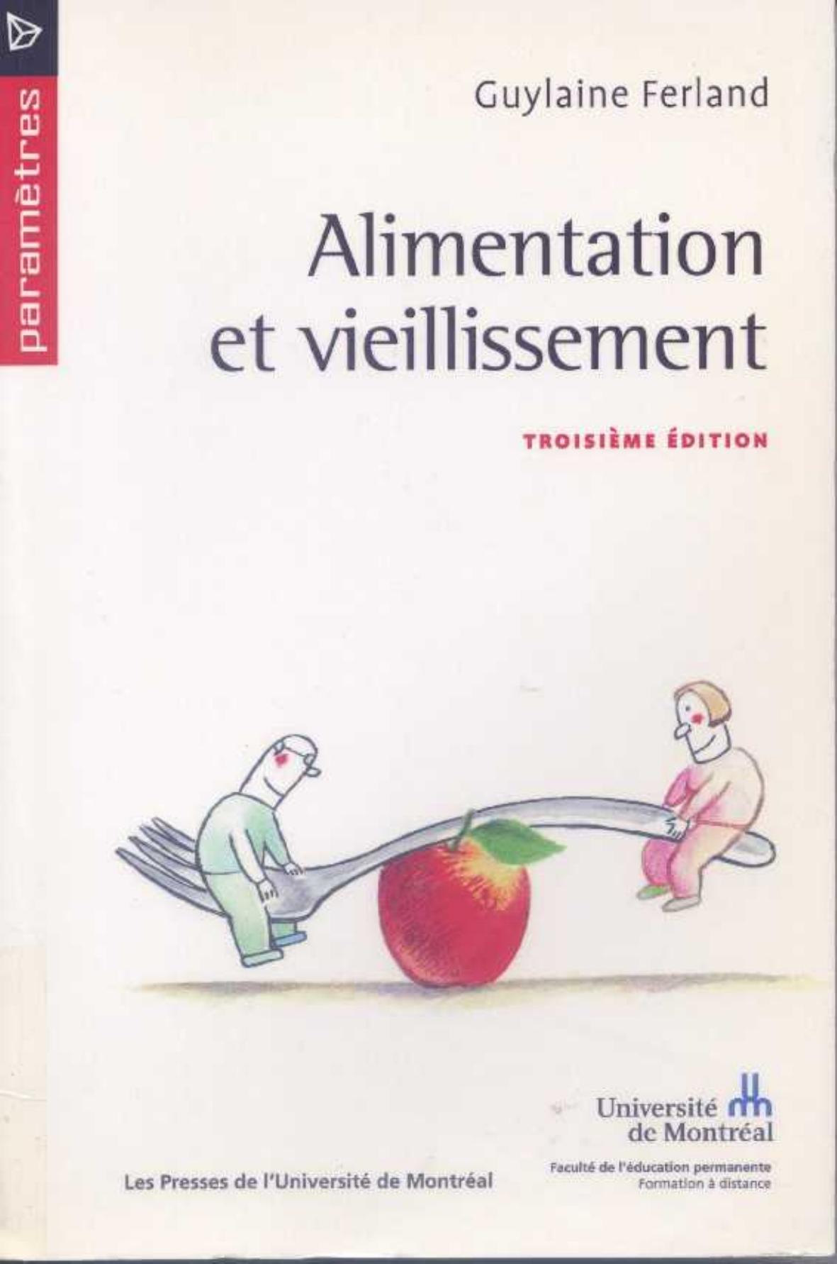 Cet ouvrage se consacre à l'étude de la relation complexe entre alimentation et vieillissement en analysant en détail le profil alimentaire des aînés et leurs besoins nutritionnels. On y présente notamment : les problèmes nutritionnels fréquents chez les personnes âgées, comme la dénutrition, la déshydratation ou la dysphagie; les notions de base nécessaires à la compréhension des particularités nutritionnelles inhérentes au vieillissement; les facteurs susceptibles d'influer sur les apports nutritionnels; l'évaluation nutritionnelle; a les nouvelles recommandations nutritionnelles en ce qui a trait notamment à l'énergie, aux nutriments, à l'eau, etc.; a le nouveau guide alimentaire canadien; les composés alimentaires exerçant des actions importantes sur l'organisme.