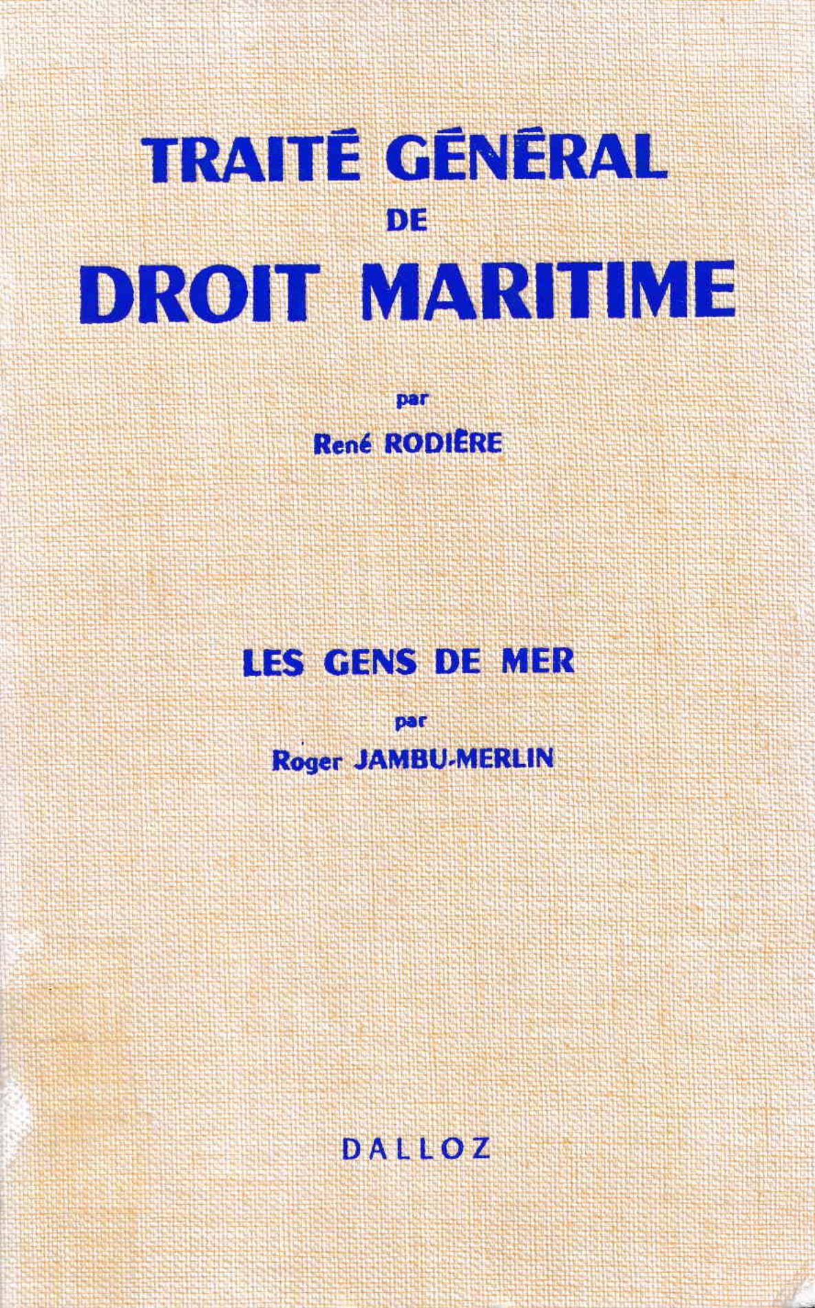 Rodière, R. & Jambu-Merlin, R. (1978). Traité général de droit maritime : les gens de mer . Dalloz;