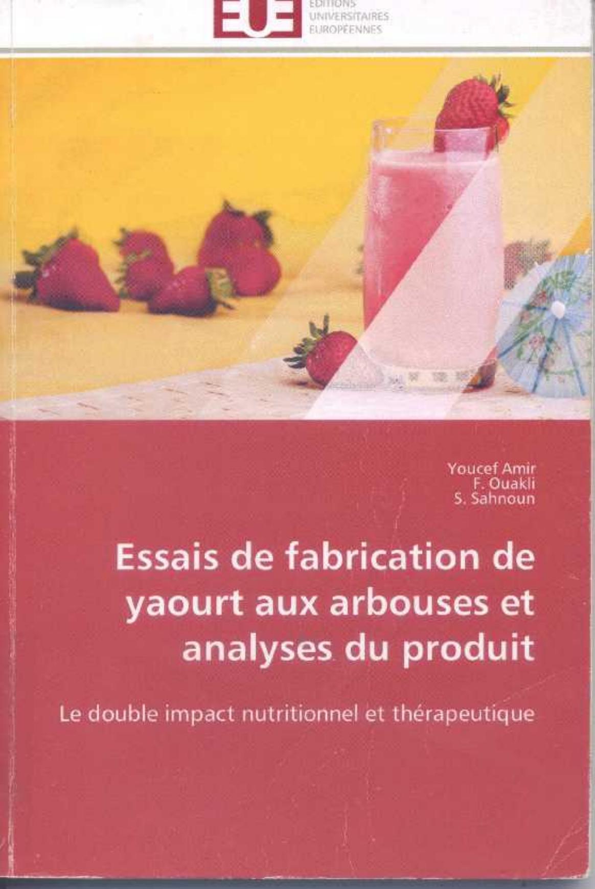 Ce présent travail s'est fixé comme objectifs primo, la caractérisation d'un fruit local peu exploité que sont les arbouses qui contiennnent outre des sucres, sels minéraux et des vitamines, des composés phénoliques à activités thérapeutiques diverses et secundo, sa valorisation par la formulation d'un yaourt à base de ces fruits. Les analyses physico-chimiques, microbiologiques et sensorielles (pH, acidité, EST, ESD, protéines totales, phenols, lactose..., bactéries pathogènes...) effectuées sur le lait, la poudre du lait, les fruits et le yaourt révèlent une conformité par rapport aux normes Afnor et Jora. Les résultats obtenus montrent que notre produit est comparable à d'autres produits déjà commercialisés sans omettre son apport en antioxydants. Ce travail démontre la possibilité d'incorporer ce fruit dans le yaourt avec une répercussion positive sur l'aspect organoleptique. Il serait utile de penser à accroitre la production en ces fruits en vue de leur utilisation. Les professionnels de l'industrie laitière, les étudiants en sciences des aliments et en contrôle de la qualité pourront découvrir les méthodes de dosages du lait, du yaourt et de ces fruits.