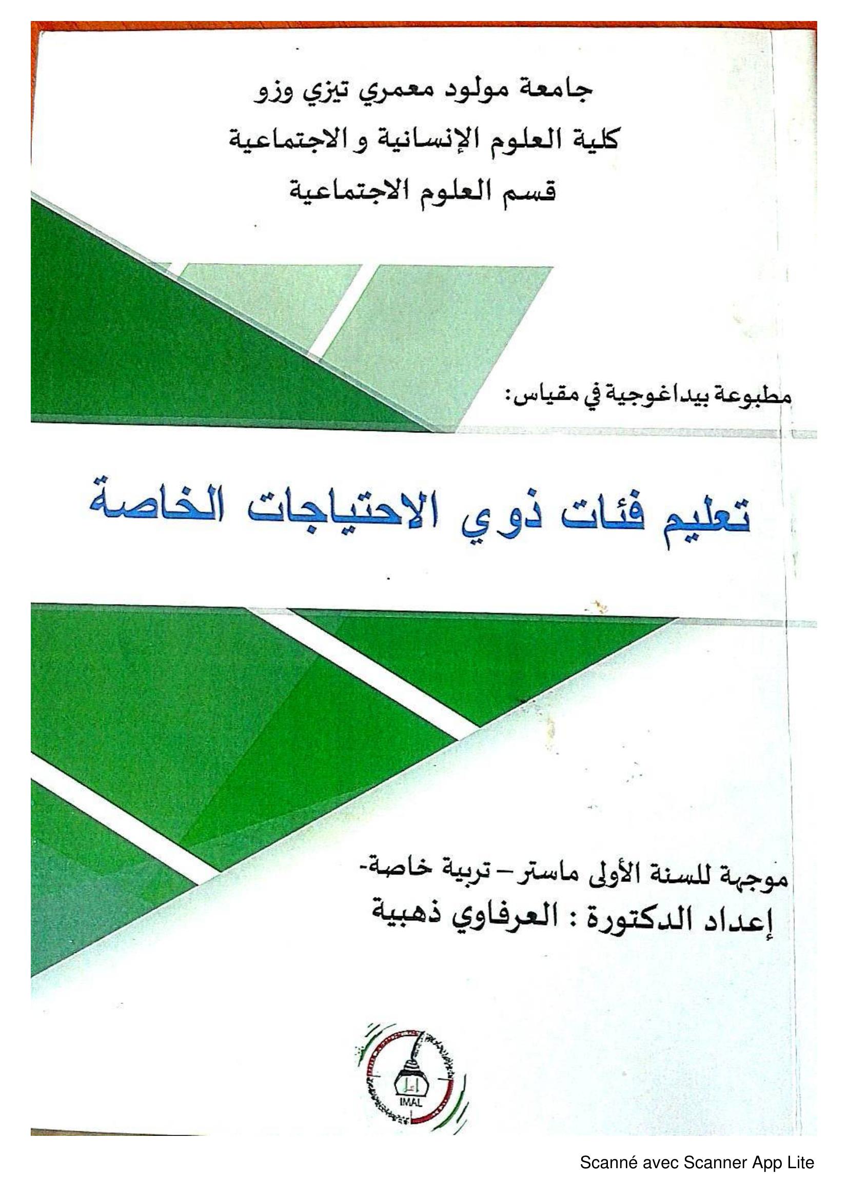 تعليم فئات ذوي الإحتياجات الخاصة : موجهة للسنة الأولى ماستر - تربية خاصة