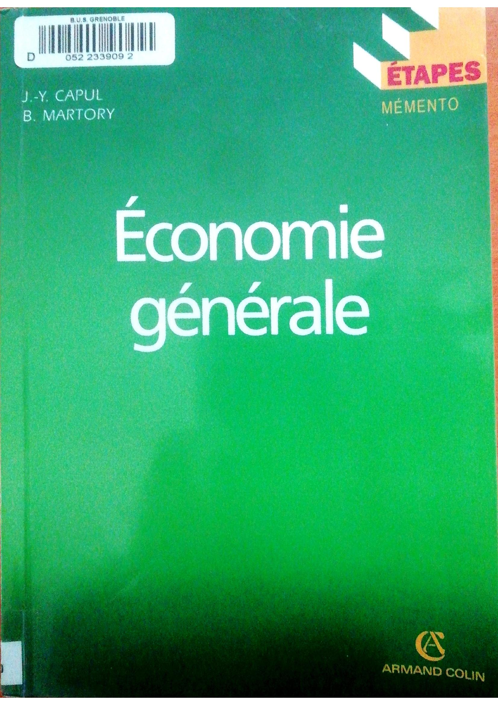 Capul, J. & Martory, B. (2005). Economie générale . A. Colin;