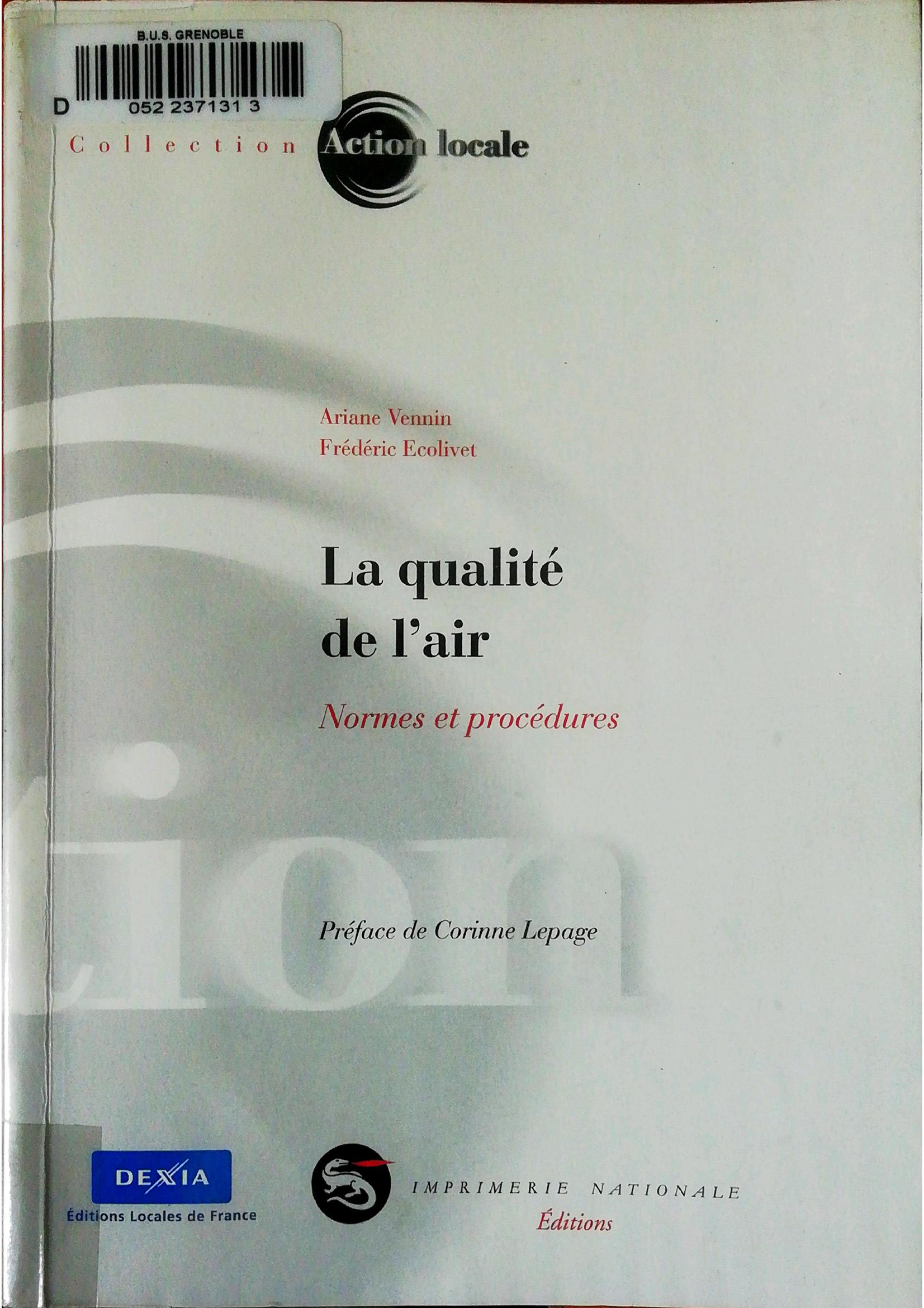 Vennin, A. et al. (2000). La qualité de l'air : normes et procédures . Imprimerie nationale éditions; Editions locales de France;