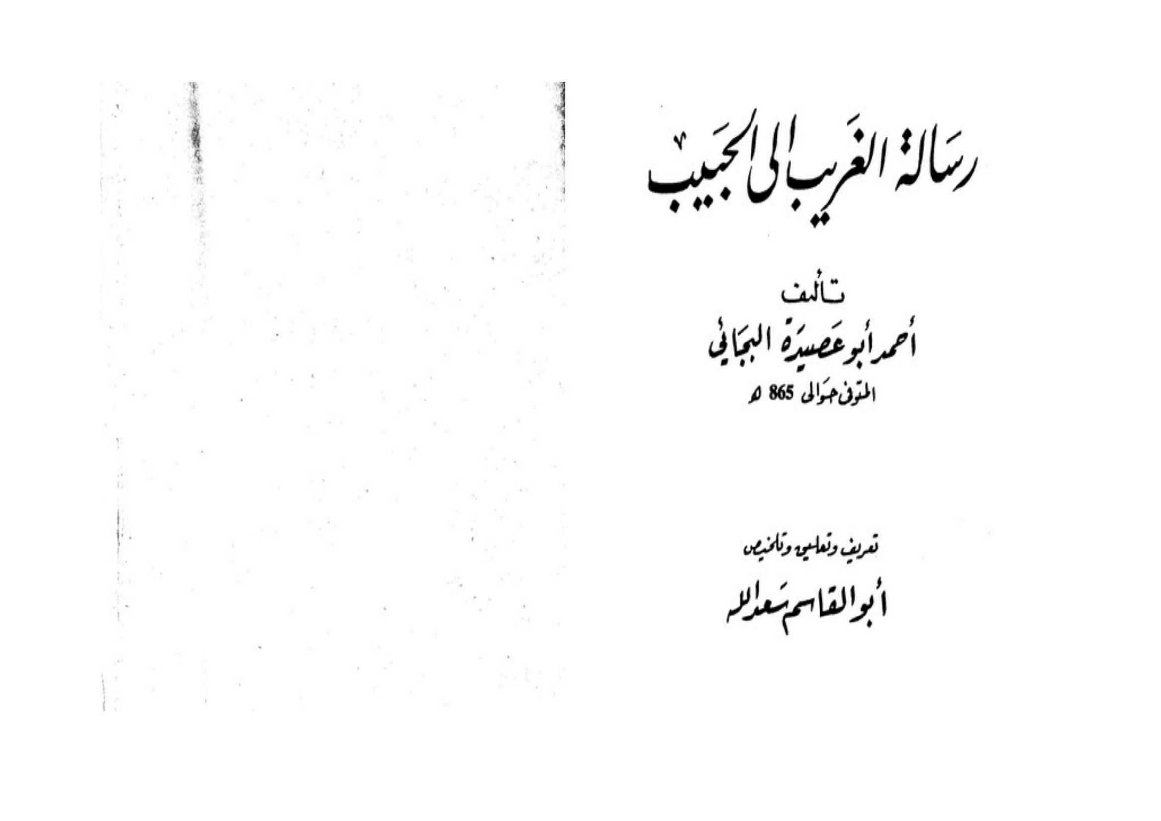 البجائي أحمد أبو عصيدة & سعد الله، أبو القاسم (2015). مجموعة أعمال الدكتور أبو القاسم سعد الله : رسالة الغريب إلى الحبيب ؛ و يليه حكاية العشاق في الحب و الإشتياق ؛ و يليه مختارات مجهولة من الشعر العربي . عالم المعرفة;