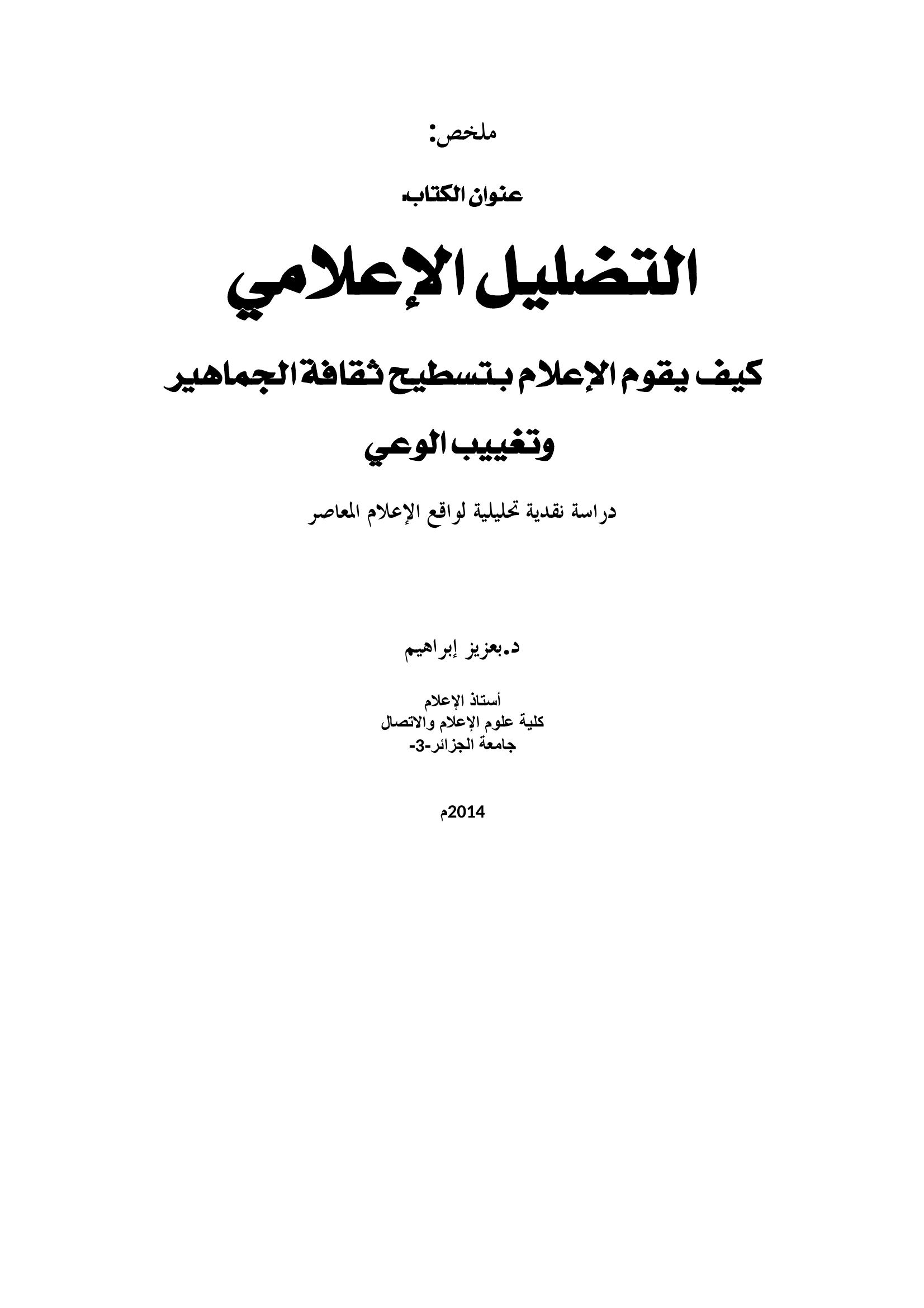 التضليل الإعلامي : كيف يقوم الإعلام بتسطيح ثقافة الجماهير و تغييب الوعي : دراسة نقدية تحليلية لواقع الإعلام المعاصر