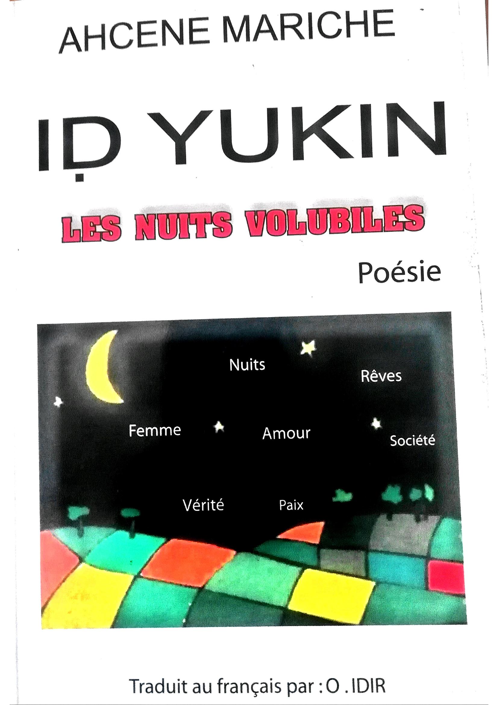 L'auteur provoque le verbe par lequel il dépeint un quotidien morose et met à nu les souffrances d’un cœur brisé.Id Yukin, plus qu’aucun autre recueil de poésie, fait de l’amour, un thème prioritaire sans ambages, ni retenue aucune. Trente deux textes écrits intégralement à la première personne du singulier. Subjectif diraient certains, mais le “moi” n’a jamais été vu d’un œil négatif en littérature. En d’autres termes, nul ne peut être préoccupé par les soucis d’autrui que soi-même, et rien ne peut être bien maîtrisé et connu que par soi-même.Les textes kabyles sont traduits en français par O. Idir, comme il est indiqué sur la couverture. Une mesure, sans doute, en vue de toucher un lectorat plus large. La traduction n’est jamais interdite en littérature, à condition qu’elle soit fidèle au texte orignal, et aux sentiments de l’auteur. Dans ce recueil édité à compte d’auteur, le personnage central de la majorité des textes est le cœur de l’auteur. Un cœur meurtri par-ci, un cœur en ébullition par-là, un cœur tel une paire de bœufs ; mon cœur n’est qu’un organe banal, et que sais-je encore. En somme, c’est un cœur surchargé et empreint de jérémiades et lamentations.“Les nuits volubiles” est un recueil écrit à la forme négative et interrogative.En effet beaucoup d’interrogations et beaucoup de négations, à donner le tournis à l’affirmative, jugez-en : Est en paix celui qui n’a rien su et n’a rien vu/Est en paix celui qui n’a point de mérite/ Anta Kem ?/ D acu kem ?/ Anda kem ? I ni-d-ma themmled-iyi (dis moi si tu m’aimes) etc… Côté structure, Ahcene a utilisé le sizain tout le long de son recueil, à l’exception de “Amedyaz” (le sommeil du poète) qui est un huitain (un poème à huit vers dans chaque strophe. Le sizain, pour rappel, est une structure très répandue dans la poèsie kabyle, avec le quatrain et le tercet, qui compose à son tour le neuvain. Quant à la rime, l’auteur a employé la rime la plus usitée en poésie kabyle, en l’occurrence la rime croisée.Hormis l’amour, le poète a abordé certains autres thèmes, à l’instar du social, comme dans “Tihifa” (Mes tracas). Là, Ahcène ne se limite pas aux complaintes, mais illustre ses propos par une sagesse inspirée de celle du terroir : “Win ur nerri ddwa i tit-is/ur s t-id-ittg u emmi-s/ win ur nezri abernus-is/ Ammas yedd-deg cuad-is (celui qui n’écarte la poussière sur sa pupille/ qu’il attende son proche lui souffler sur les cils/Celui qui ne se débarrasse pas de la crasse accrochée à ses pans/s’en ira la saleté enlisée dans son vêtement).La condition de la femme est mise en exergue par l’auteur également dans “Tamettut” (la femme) un autre thème est abordé dans la quatrième ouverture. Il s’agit de “la vérité”, un concept ayant fait couler beaucoup d’encre dans la littérature universelle. En conclusion, Ahcène mariche vient de marquer de son empreinte la poèsie kabyle, à travers ce recueil de 116 pages.