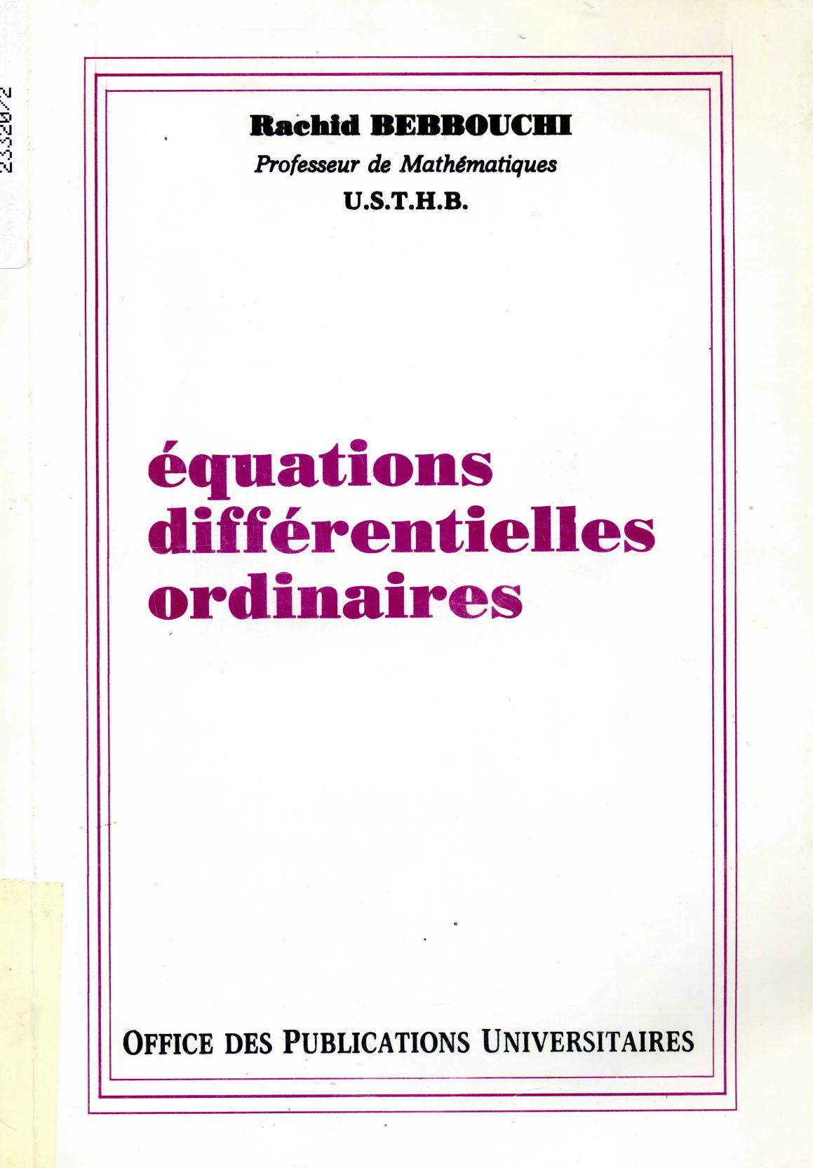 Bebbouchi, R. (1995). Equations différentielles ordinaires . OPU;