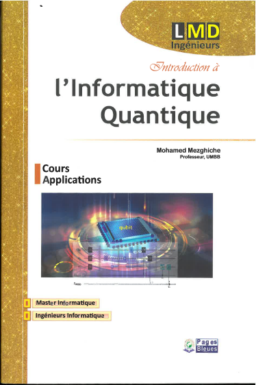 Ce livre constitue une introduction pédagogique à l’informatique quantique, destinée aux étudiants et aux lecteurs ayant des bases en informatique, mathématiques ou physique. L’ouvrage présente les principes fondamentaux de la mécanique quantique appliqués au calcul informatique et explique comment ces principes permettent de concevoir de nouveaux modèles d’ordinateurs capables de résoudre certains problèmes plus efficacement que les ordinateurs classiques. L’auteur commence par rappeler les bases de l’informatique classique et les limites des systèmes de calcul traditionnels. Il introduit ensuite les concepts essentiels de l’informatique quantique, notamment le qubit, la superposition et l’intrication quantique, qui permettent de traiter simultanément plusieurs états d’information et d’augmenter considérablement la puissance de calcul. L’ouvrage décrit également les portes logiques quantiques, les circuits quantiques et les méthodes de mesure, éléments nécessaires pour construire et programmer des algorithmes quantiques. Plusieurs algorithmes quantiques fondamentaux sont présentés afin d’illustrer l’intérêt de cette nouvelle approche du calcul. Enfin, le livre aborde les applications de l’informatique quantique dans différents domaines tels que la cryptographie, l’optimisation, la simulation de systèmes physiques ou chimiques et l’intelligence artificielle. Il discute également des défis technologiques et des perspectives futures liés au développement des ordinateurs quantiques.